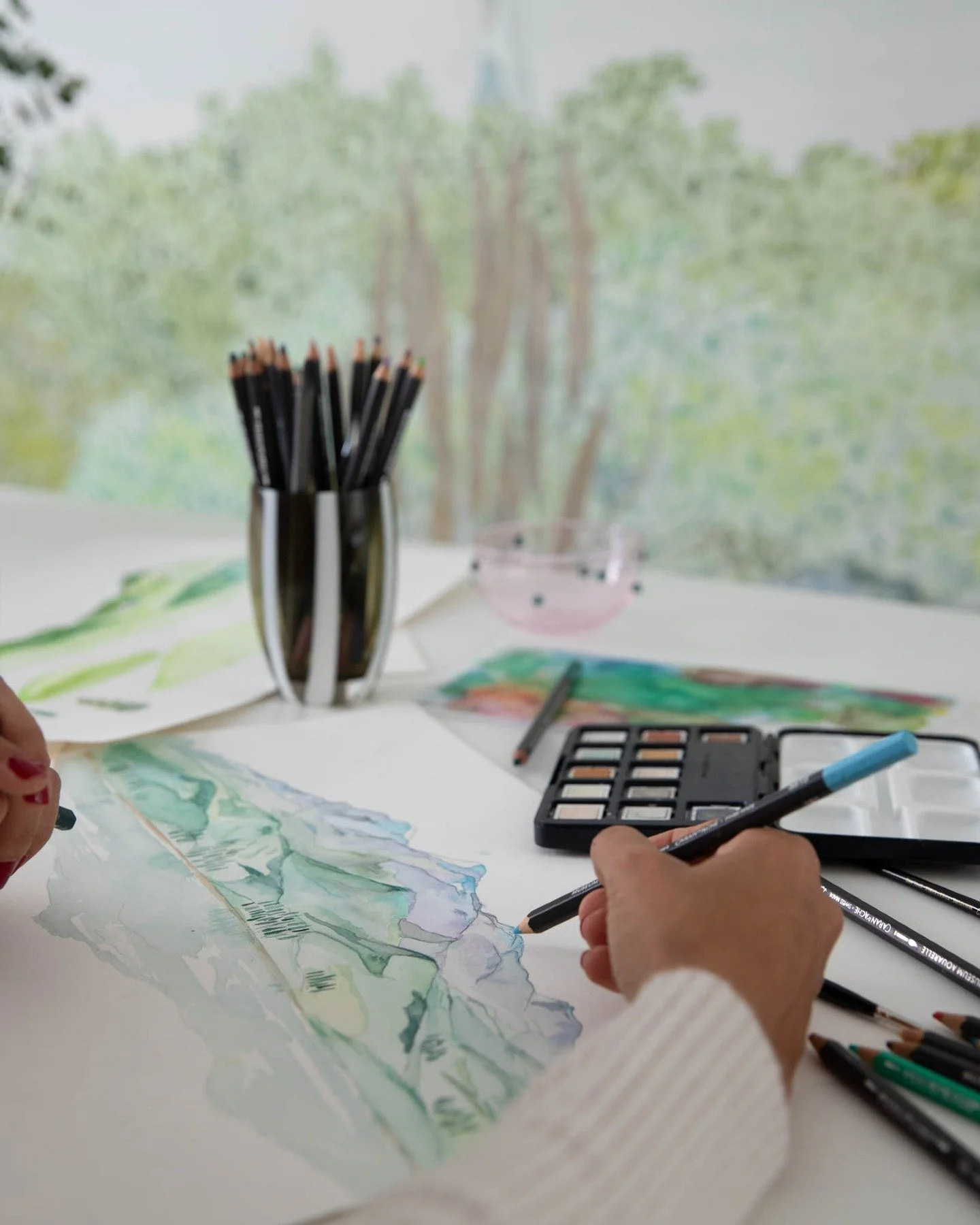 Our latest wallpaper collection is inspired by the breathtaking Atlantic Forest that stretches along the Brazilian coast. It features two tropical panoramic designs and one pattern design, where lush botanical and jungle elements come to life. In some wallpapers, delicate geometric touches—like soft stripes—introduce a subtle rhythm.