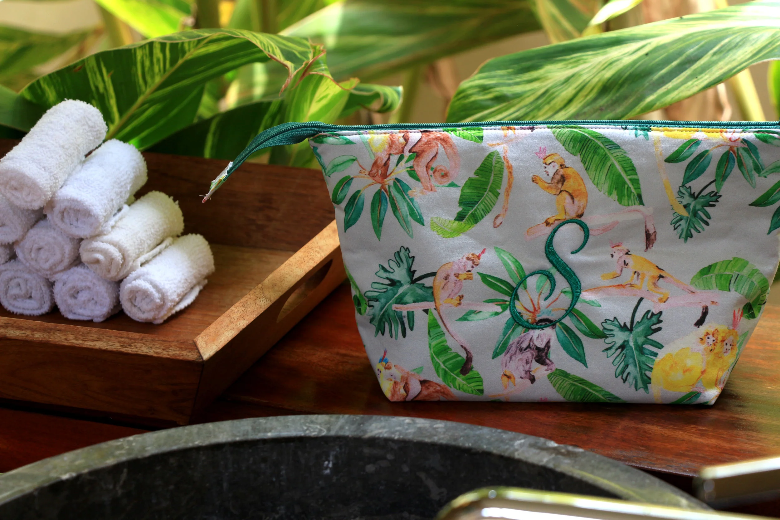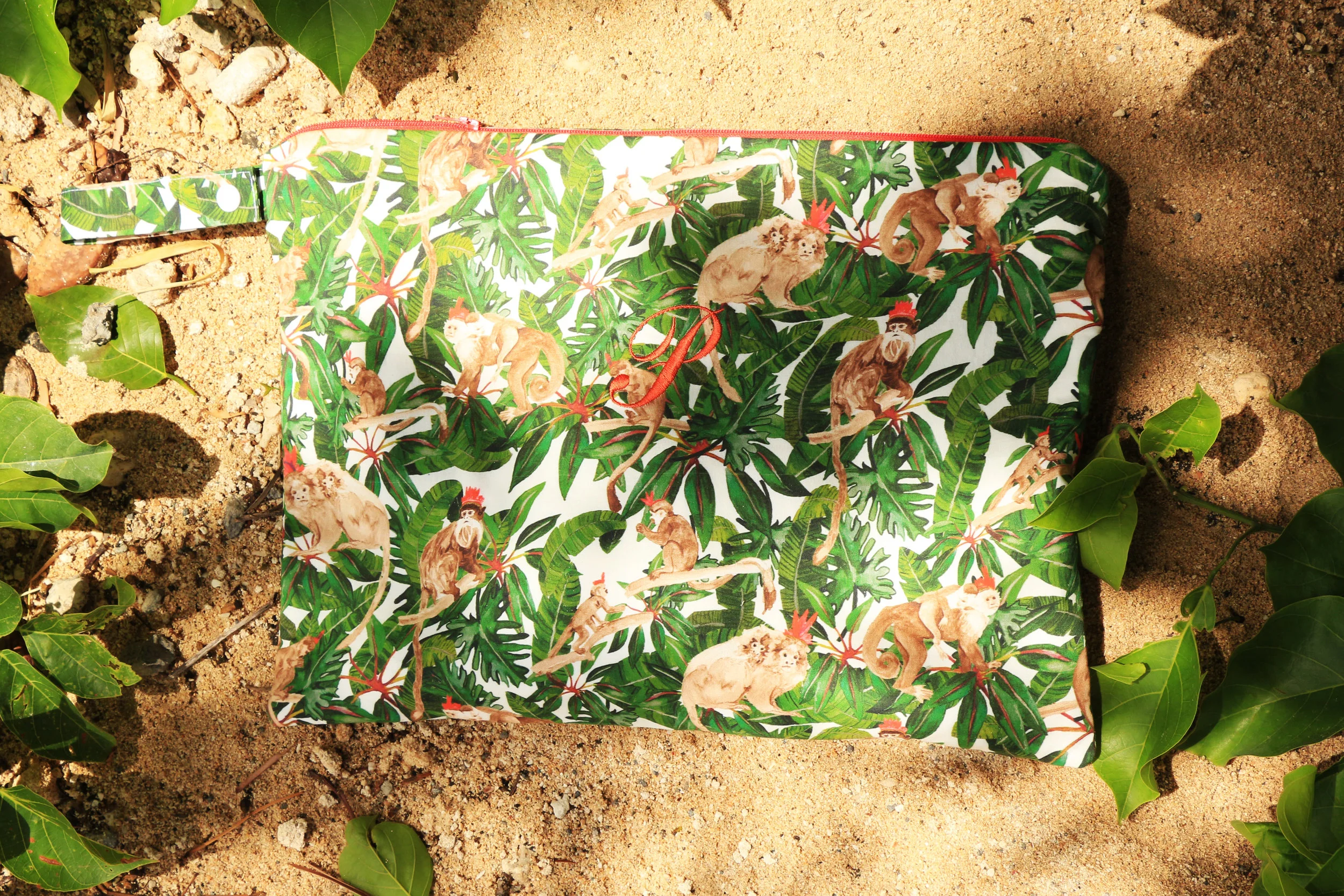 These spirited little monkeys, forming a delicious team in the middle of tropical leaves, are all unique species found in the Amazon Bassin. They are coronated by feather crowns as a symbol of their wisdom and a tribute to the indigenous tribes they share the rainforest with.